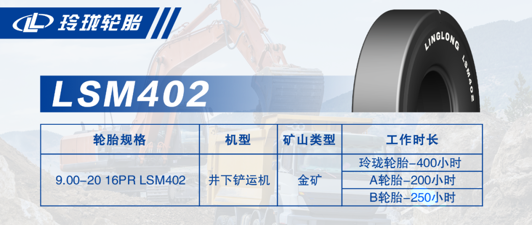 根据客户反馈:玲珑轮胎井下矿用轮胎平均使用寿命400小时,对比A轮胎和B轮胎使用寿命分别增加200小时和150小时。