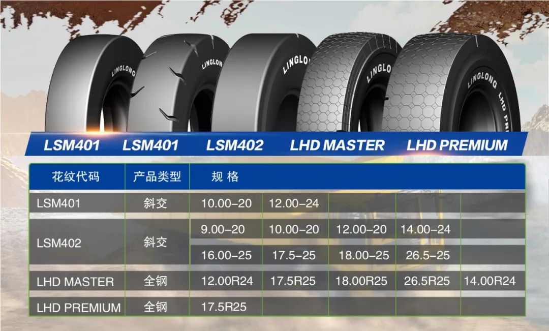 除了不断提升产品性能,玲珑轮胎也根据市场的不同使用需求,不断扩大产品体系,进行产品细分。目前,玲珑井下矿用轮胎分为井下铲运机、井下矿运卡车两大系列,共计9个花纹24款产品。