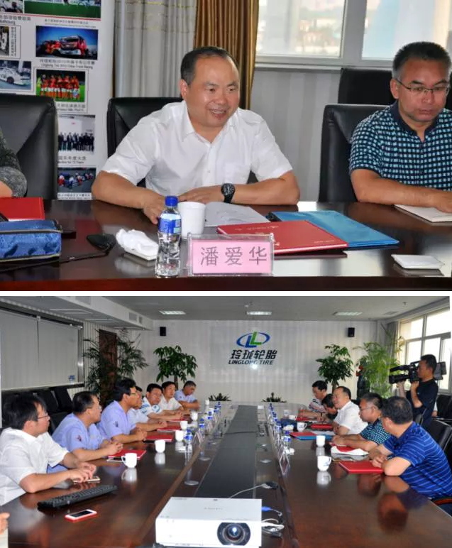 6月15日,工业和信息化部原材料工业司副司长潘爱华、工信部原材料司化工处韩敬友副处长带领调研组莅临玲珑轮胎调研,烟台市经信委工委委员邹强、招远常务副市长王浩等县市主要领导,以及玲珑轮胎董事长兼总裁王锋陪同接待。