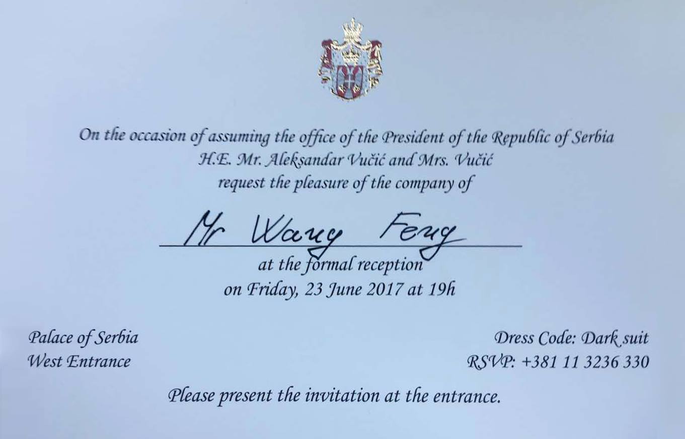 6月23日,塞尔维亚新任总统亚历山大·武契奇就职典礼在首都贝尔格莱德举行。应塞尔维亚共和国邀请,山东玲珑轮胎股份有限公司董事长兼总裁王锋出席就职典礼。