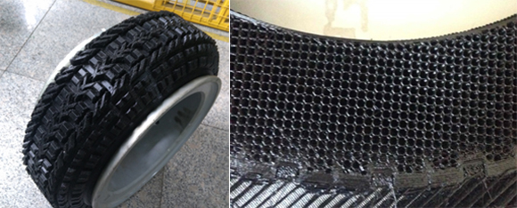 日前,由山东玲珑轮胎股份有限公司与北京化工大学联合开发的3D打印聚氨酯轮胎成功面世,并测试合格,成为国内首条通过3D打印的方式制备出标准规格的聚氨酯轮胎。