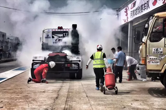 玲珑轮胎冠名赞助的中国卡车公开赛已经3个年头,自2015年以来每一站赛事都有创新和进步,中国卡车公开赛的规模和竞技水平和激烈程度每年都有显著提升,本站比赛,在昨日的排位赛中,17号赛车增压器炸裂,现场浓烟滚滚,玲珑轮胎中国卡车公开赛的激烈程度可见一斑。