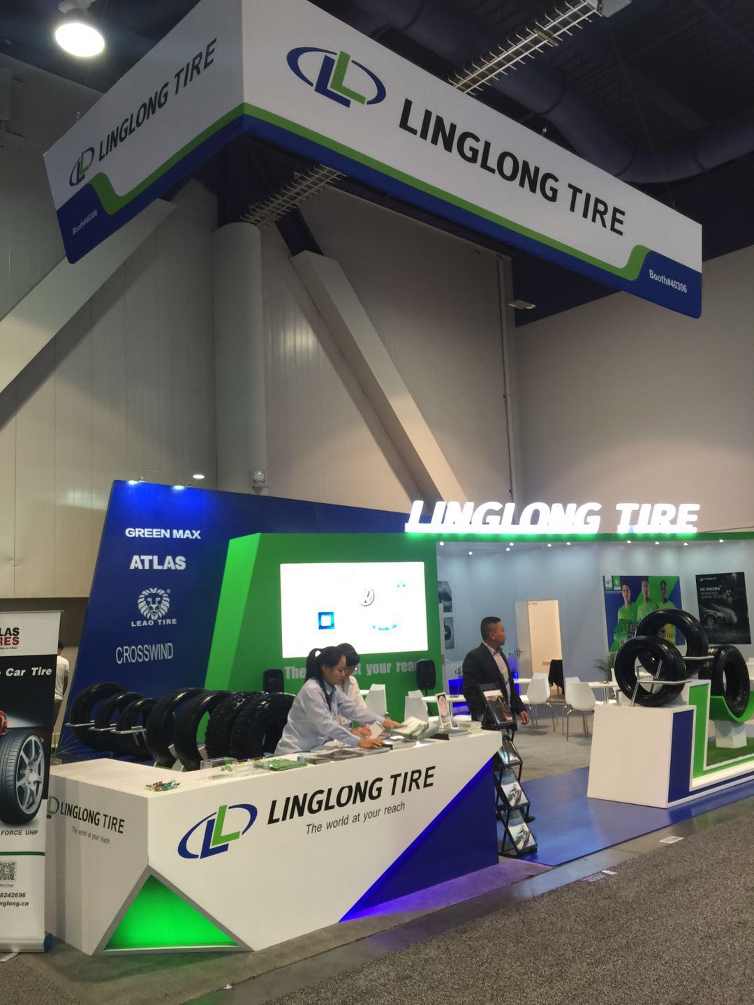 玲珑轮胎一直倡导低碳环保、绿色先行的环保理念,此次展位的设计也很好贯彻了这一理念。展位以亮化的“LINGLONG TIRE”为中心,不论从展位的哪一个角度都能吸引到观众的第一视觉。简单大气的设计风格,清新明朗的色调搭配,热情周到的现场接待,丰富多样的宣传资料和小礼品,玲珑成为了整个场馆内一道靓丽的风景线!