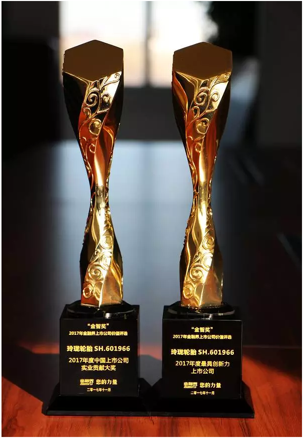 2017年11月23日,以“重归实业 价值再发现”为主题的金融界2017中国上市公司创新发展高峰论坛暨“金智奖”上市公司价值评选颁奖盛典在北京盛大召开。玲珑轮胎(股票代码:601966)获评“金智奖·2017年度中国上市公司实业贡献奖”和“金智奖·2017年度最具创新力上市公司”两项大奖。