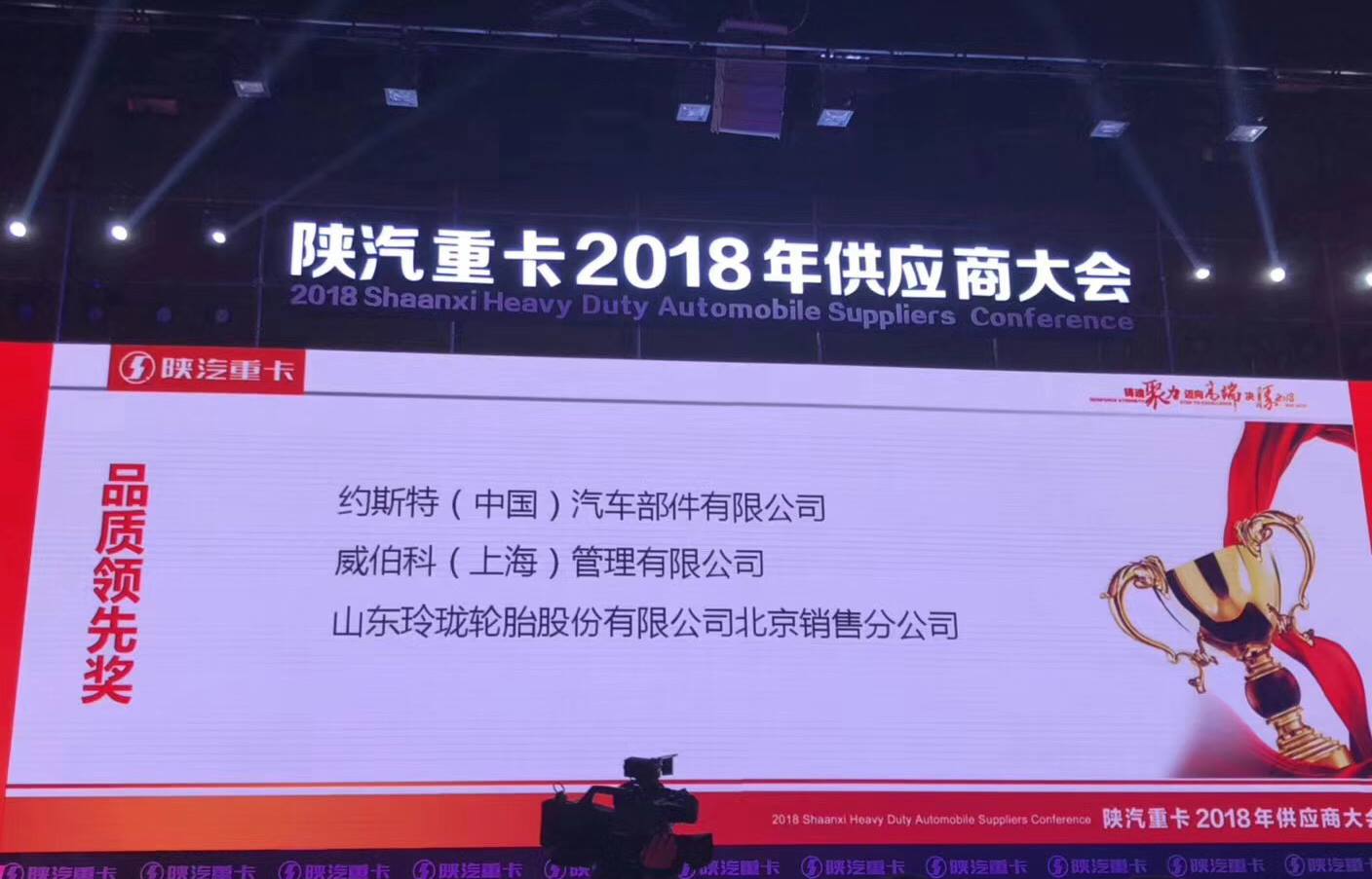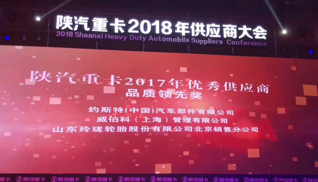 11月28日,以“铸魂聚力 迈向高端 决勝2018”为主题的陕汽重卡2018年供应商大会在西安隆重举行。玲珑轮胎凭借一流的技术实力和优异的产品品质,荣获“陕汽重卡2017年优秀供应商·品质领先奖”。至此,玲珑轮胎连续3年获得陕汽重卡“品质领先奖”,实现“品质领先奖”的3连冠!