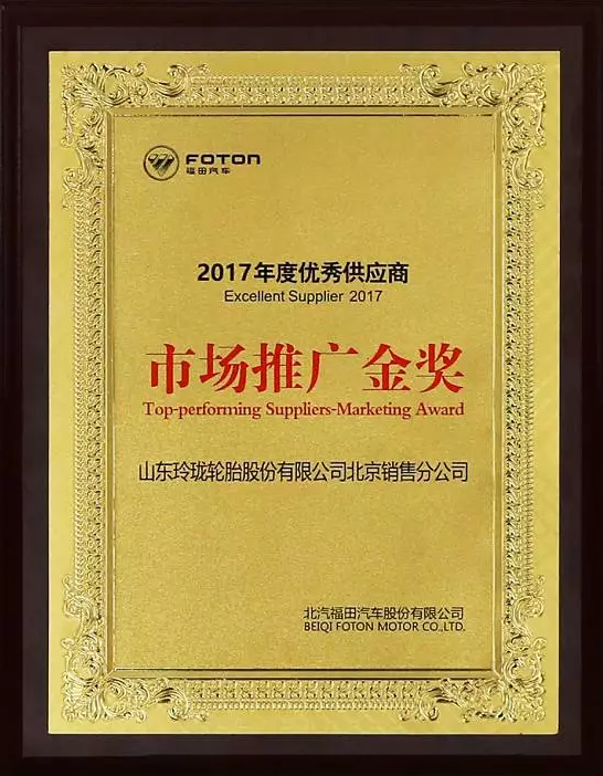 玲珑轮胎获福田汽车“订单保障金奖”“市场推广金奖”“合作共赢奖”三项大奖!