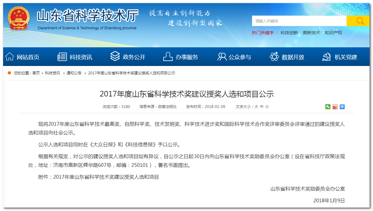 2017年度山东省科学技术奖公示,玲珑轮胎成唯一上榜轮胎企业!