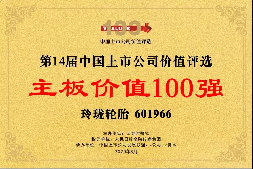 上榜公司作为价值投资的标杆,引领了A股长期稳定健康发展的方向,在我国经济高质量发展中发挥了创新“领跑者”和产业排头兵的作用。作为主板上市公司一员,玲珑轮胎将以此次获奖为激励,继续秉承稳健的经营风格,不断提升市场占有率,努力做资本市场有口碑、消费市场有品牌、财务方面持续盈利、投资者回报不断提升的价值公司!