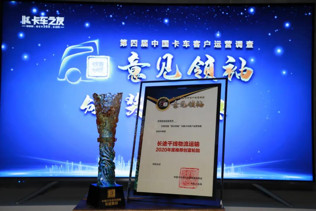 12月29日,由《卡车之友网》主办的以“创富”为主题的第四届中国卡车客户运营调查意见领袖颁奖盛典活动在北京隆重举行。本次颁奖盛典,玲珑轮胎远航系列荣获中国意见领袖推荐的年度“长途干线物流运输”创富品牌称号。