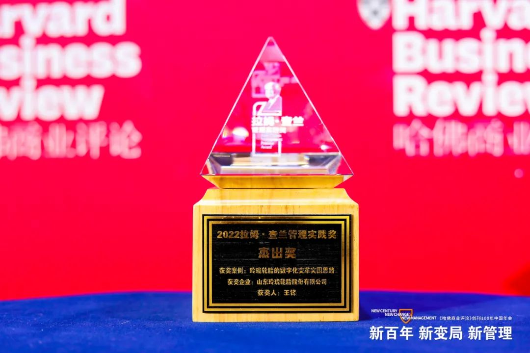 11 月 10日,全球管理界权威奖项 “拉姆·查兰管理实践奖”获奖名单在《哈佛商业评论》中国年会期间揭晓。经过6个多月的案例征集和评选,玲珑轮胎凭借多年来在轮胎销售领域的的数字化变革突围思路,从一众优秀参选案例中突围,荣获2022 “拉姆·查兰管理实践奖—杰出奖”。